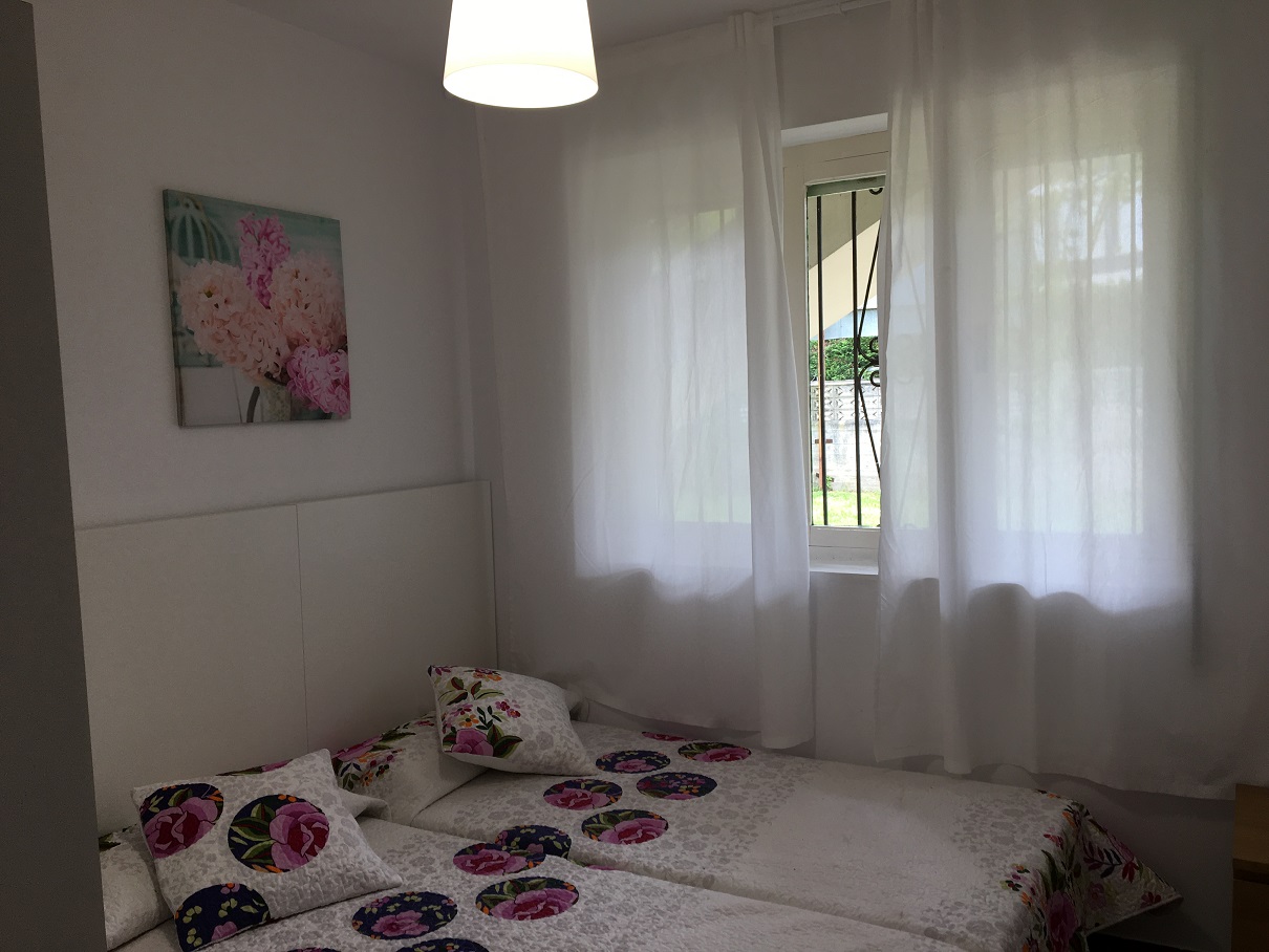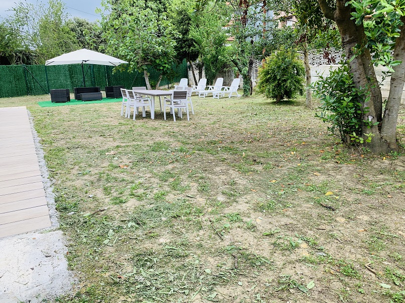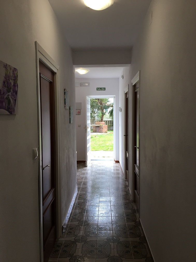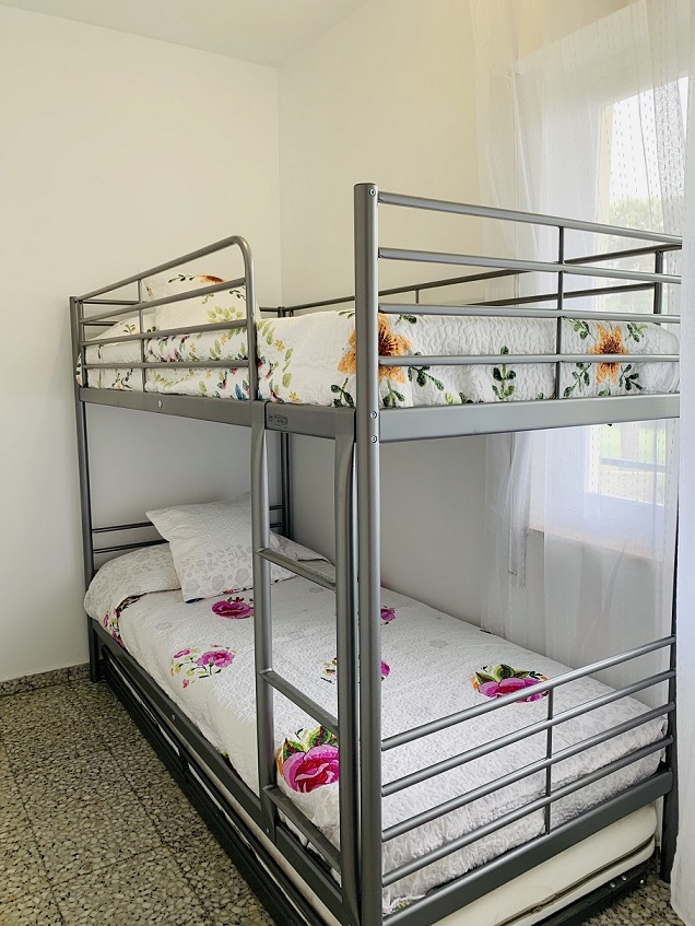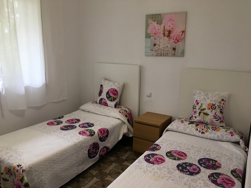 | Dispone de amplio jardín con tumbonas, mesa con sillas, sombrilla, barbacoa y arbolado con sus zonas de sombra. Totalmente independiente. En el interiror dispone de 5 habitaciones siendo todas dobles, la principal con cama doble, dos con dos camas individuales cada una y otras dos con dos literas cada una. Dispone de un baño completo y un aseo. Consta también de cocina independiente con inducción, lavavajillas, nevera, mesa, campana purificadora, cafetera, tostadora de pan y vajilla completa. Dispone de lavadora. También toallas, equipamiento de cama completo, equipamiento de baño tambien completo, elementos de limpieza del hogar, etc. |