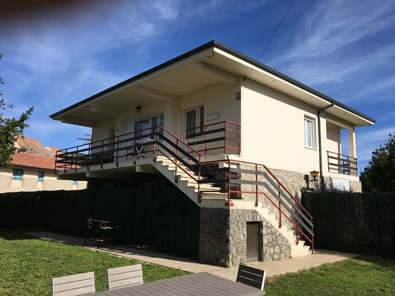 | Dispone de amplio jardín con tumbonas, mesa con sillas, sombrilla, barbacoa y arbolado con sus zonas de sombra. Totalmente independiente. En el interiror dispone de 3 habitaciones siendo todas dobles, la principal con cama doble y con baño incorporado y las otras dos con dos camas individuales cada una. Además dispone de otro baño completo adicional. Consta también de cocina con barra americana, cocina de inducción, lavavajillas, nevera, mesa, campana purificadora, cafetera, tostadora de pan y vajilla completa. Salón-comedor con chimenea de leña. y sofá cama para dos personas. Dispone de lavadora. También toallas, equipamiento de cama completo, equipamiento de baño tambien completo, elementos de limpieza del hogar, etc. |