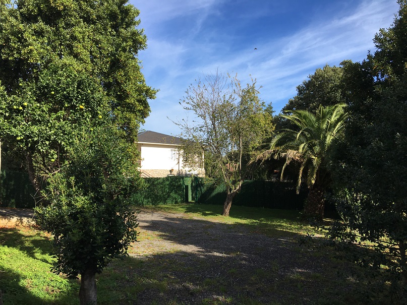 | Dispone de amplio aparcamiento para 7 vehículos. Desde el mismo se accede a cada uno de los dos jardines y sus respectivas viiviendas. Con arbolado. |