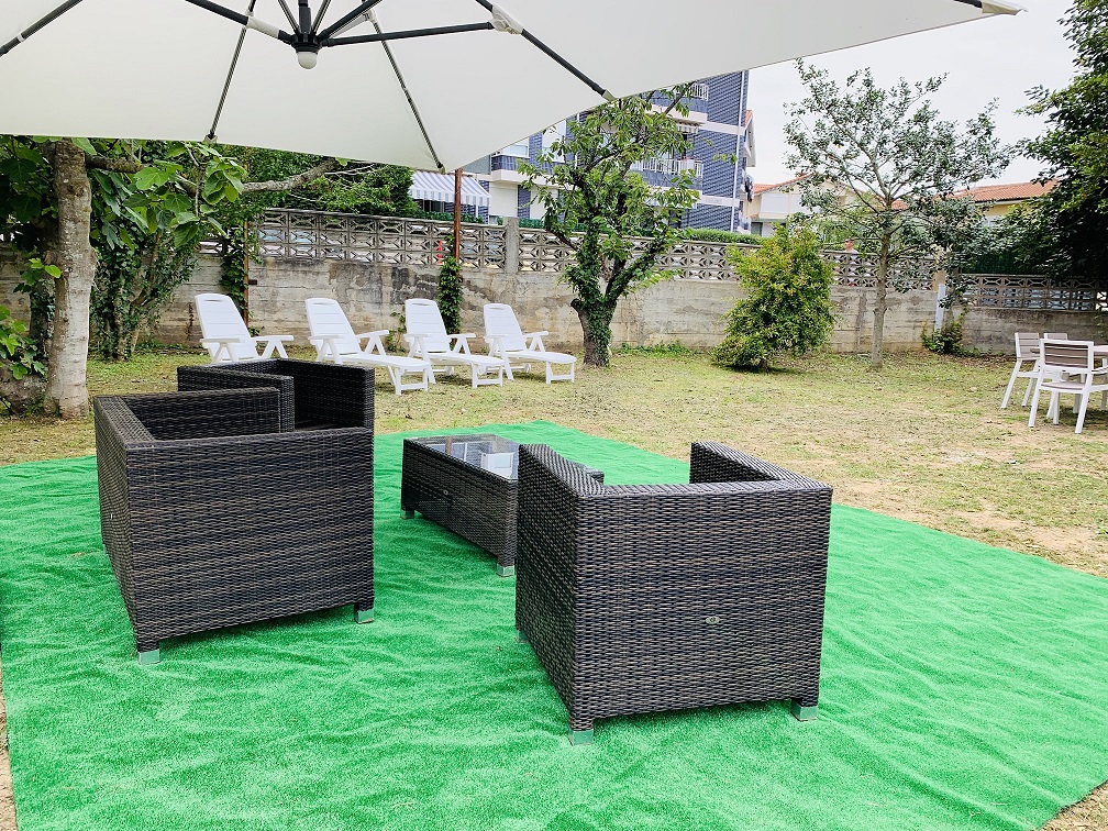 | Casa con jardín con dos plantas y sus jardines independientes. Muy céntrica. Dispone de fibra con wifi, barbacoa y amplio jardín. Con aparcamiento. Preferentemente familias (sino mayores de 25 años). Ideal para grupos del camino de Santiago donde descansar plácidamente. Zona residencial tranquila pues no es zona de paso pero muy céntrica. Andando a 8 minutos de la playa de Ris, campo de golf, playa de Trengandín, paseo costero y el centro de la villa. Rodeado por tres vientos de viviendas unifamiliares. |