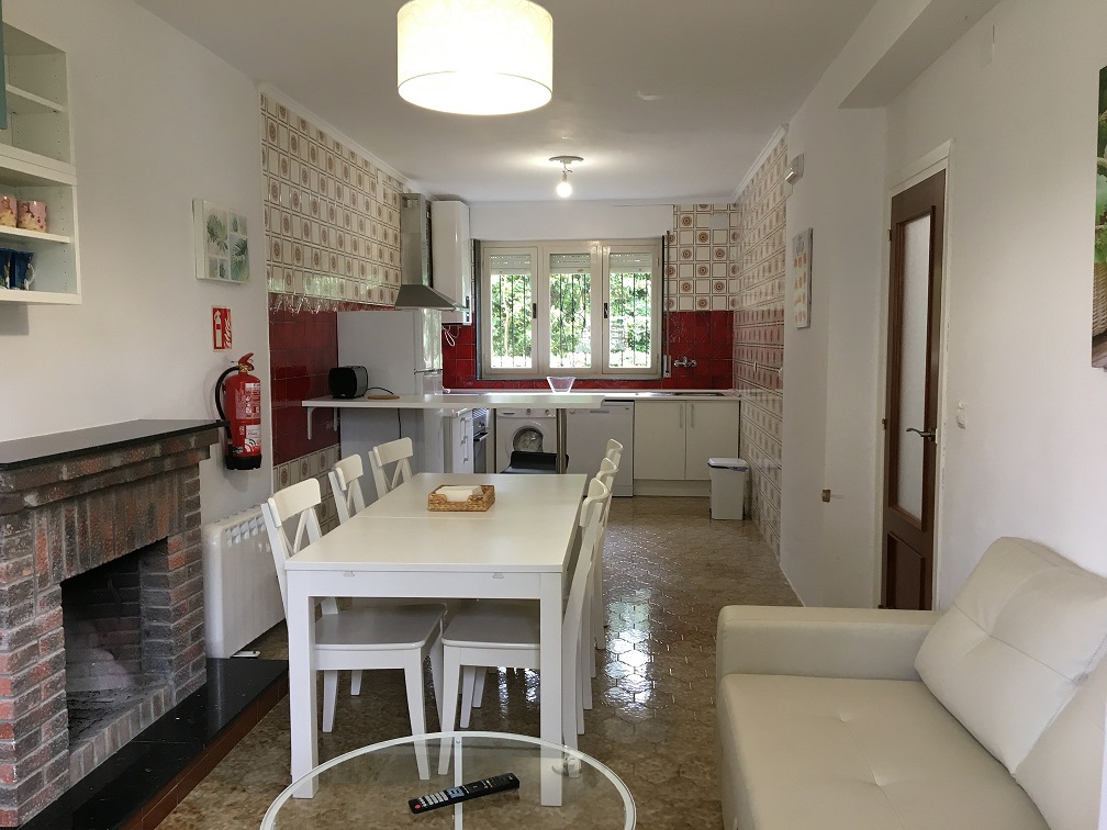Dispone de amplio jardín con tumbonas, mesa con sillas, sombrilla, barbacoa y arbolado con sus zonas de sombra. Totalmente independiente. En el interiror dispone de 3 habitaciones siendo todas dobles, la principal con cama doble y con baño incorporado y las otras dos con dos camas individuales cada una. Además dispone de otro baño completo adicional. Consta también de cocina con barra americana, cocina de inducción, lavavajillas, nevera, mesa, campana purificadora, cafetera, tostadora de pan y vajilla completa. Salón-comedor con chimenea de leña. y sofá cama para dos personas. Dispone de lavadora. También toallas, equipamiento de cama completo, equipamiento de baño tambien completo, elementos de limpieza del hogar, etc. |
