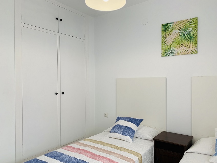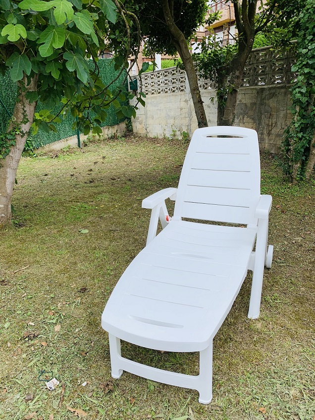 Dispone de amplio jardín con tumbonas, mesa con sillas, sombrilla, barbacoa y arbolado con sus zonas de sombra. Totalmente independiente. En el interiror dispone de 5 habitaciones siendo todas dobles, la principal con cama doble, dos con dos camas individuales cada una y otras dos con dos literas cada una. Dispone de un baño completo y un aseo. Consta también de cocina independiente con inducción, lavavajillas, nevera, mesa, campana purificadora, cafetera, tostadora de pan y vajilla completa. Dispone de lavadora. También toallas, equipamiento de cama completo, equipamiento de baño tambien completo, elementos de limpieza del hogar, etc. |